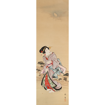 Nishii Kinsai (西井菫斎) | Beauty on a Veranda in Moonlight | ca. 1880-92 | Meiji period | Japan