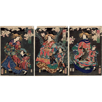 Utagawa Kunisada (歌川国貞) | Courtesan Nighttime Cherry Blossom Viewing | 1858 | Edo period | Japan